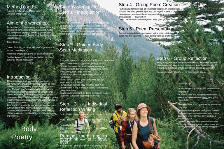 The resulting MindSketch manual transforms these nine days of experience into a practical toolkit for youth workers worldwide. Unlike typical training reports, this resource offers detailed, replicable workshop guides complete with facilitator instructions, time requirements, materials lists, and honest participant reflections about what actually worked. Activities range from 25-minute exercises like "Body Poetry" (combining guided meditation with creative writing) to more intensive sessions like "Blind Voices" (a structured vulnerability practice requiring careful facilitation).