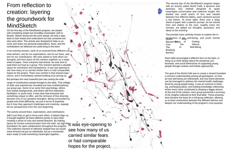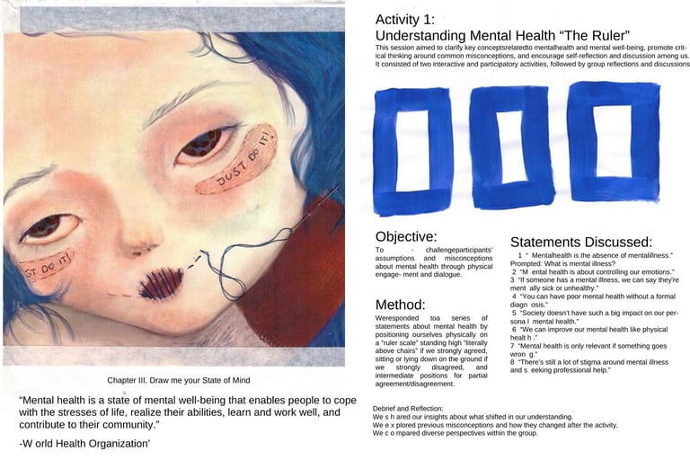 Throughout the programme, participants discovered that effective mental health support doesn't always require formal training in psychology or art therapy. What it requires is willingness to create safe spaces, embrace vulnerability, and trust in creative expression as a valid pathway to emotional understanding. As one participant reflected: "I never saw myself as an artist. But we redefined what art could be: everything can be art if it holds intention."